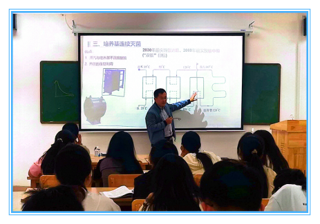 李老师主要讲授《发酵工程》课程关于“灭菌原理和技术”内容,课堂上李老师带领学生回顾了上节课授课主要内容,并点评了学生课后作业完成情况。授课过程中,李老师教态亲切自然,课件精美,动静结合,讲解到位,重难点突出,采用丰富的实践案例引导学生理解比较枯燥的原理。整个课堂结构完整,布局合理,节奏紧凑,教学目标明确,教学流程清晰,学生回答问题积极踊跃,与学生形成良好互动氛围,充分体现了教师驾驭课堂的能力。
