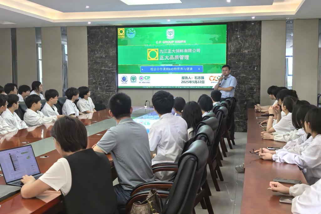 本次现场教学由正大集团九江正大饲料有限公司鼎力支持与倾情合作完成。人力资源部经理石天煜代表公司对同学们的到来表示热烈欢迎,并为学生做了精彩的企业宣讲及校企合作经历和成果。