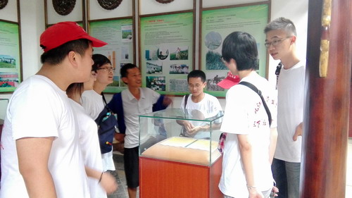 结束上午辛苦的行程后,一位队员在我们一行短暂午间休息期间查找德安当地特色农业时无意之中看到关于德安县袁家山袁隆平纪念馆的新闻报道。这个消息立刻让同学们兴奋起来,在地图搜索显示有6公里路程时,大家都抱着试一试的心情决定开始这次临时的寻访,不管结果满不满意,大家都齐心协力准备共克路途上的艰难。
