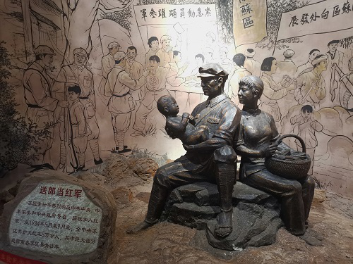 中央红军长征出发纪念园和纪念馆是“远征队”走读的第一站。1934年10月,毛泽东、周恩来、朱德、张闻天等老一辈革命家率领中央红军主力部队从于都地域的八个渡口渡过于都河,开始了举世闻名的两万五千里长征。在长征渡口前,队员们在工作人员的介绍下,重温了那段人民军队爱人民、人民军队人民爱的鱼水深情。