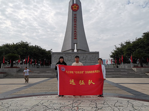 药生学院党委高度重视本次“红色走读”竞赛活动,充分发挥了党组织、团组织、辅导员、班主任及学生骨干的作用,通过微信、QQ等途径全面开展动员,全院学生积极响应,开展了多种形式的“云游”,并组建6支参赛队伍。其中,由我院杨嘉荣为队长,吴雨婷、高鑫娇为队员的三位17级学生党员组成的“远征队”,从今年八月份开始,在学校海选、片区选拔、全省比赛阶段中脱颖而出,成功地进入到实地走读阶段。