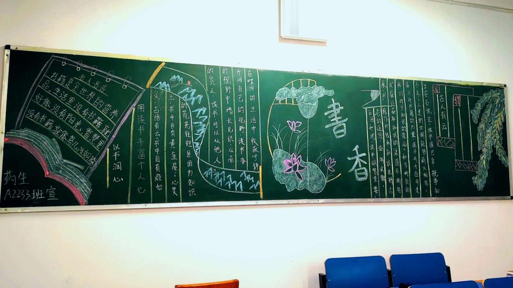 4月23日是世界读书日。为响应关于“爱读书、读好书、善读书”的深刻号召,借助世界读书日这一文化载体,鼓励学生热爱阅读,营造一个充满交流与互动、书香四溢的校园氛围,药学与生命科学学院举办以“书香浸润心灵”主题黑板报、绘画作品评选比赛。