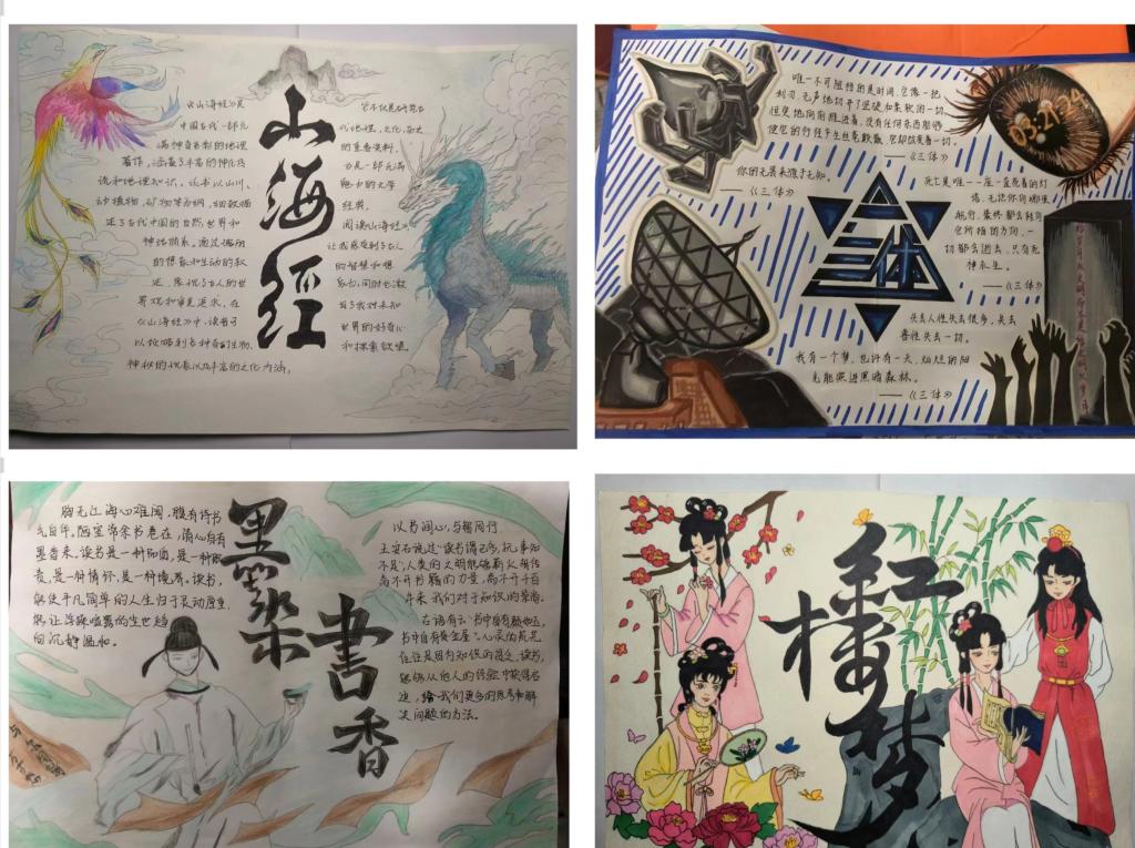 在绘画比赛中,同学们将自己所喜爱的书籍作品用绘画和手抄报的形式,以自己对书籍内容的理解,生动地用画笔在纸张上描绘出来。最终经评委投票评选出优秀作品。