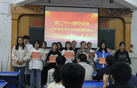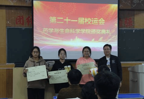 接着,张佳怡宣读了受表彰的优秀运动员、先进个人和优秀组织奖班级的名单,药学与生命科学学院党委副书记邓海波,学生科科长刘小风,思政科副科长陈慧君,学生会秘书长刘文佳为获奖同学与班级颁奖,全体参会人员以热烈的掌声表示祝贺,对他们在本届校运会中优异的表现和突出的贡献给予肯定和褒奖。