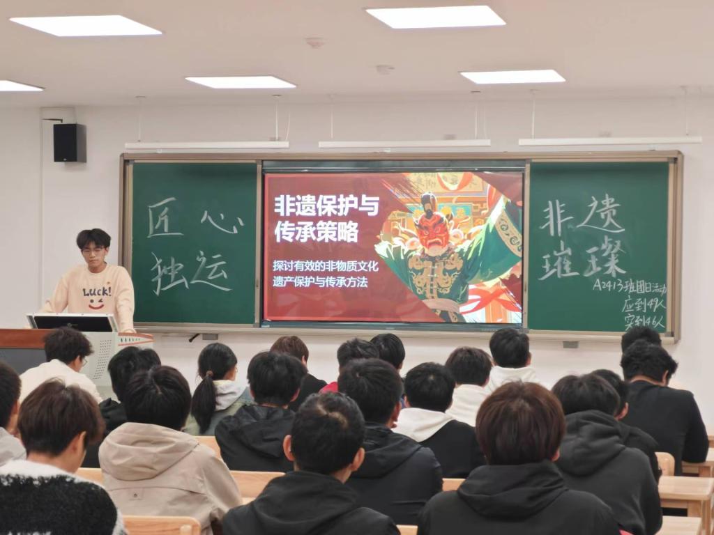 “习俗因传承而深入人心,文化因庚续而繁荣昌盛”。为了增强同学们的文化认同感,坚定文化自信,学习保护和传承非物质文化遗产,肩负起新时代赋予青年保护和传承非遗的使命,从而让非遗文化得以发扬光大。10月29日晚,药学与生命科学学院A2413班在教学楼C105开展了以“匠心独运,非遗璀璨”为主题的团日活动。