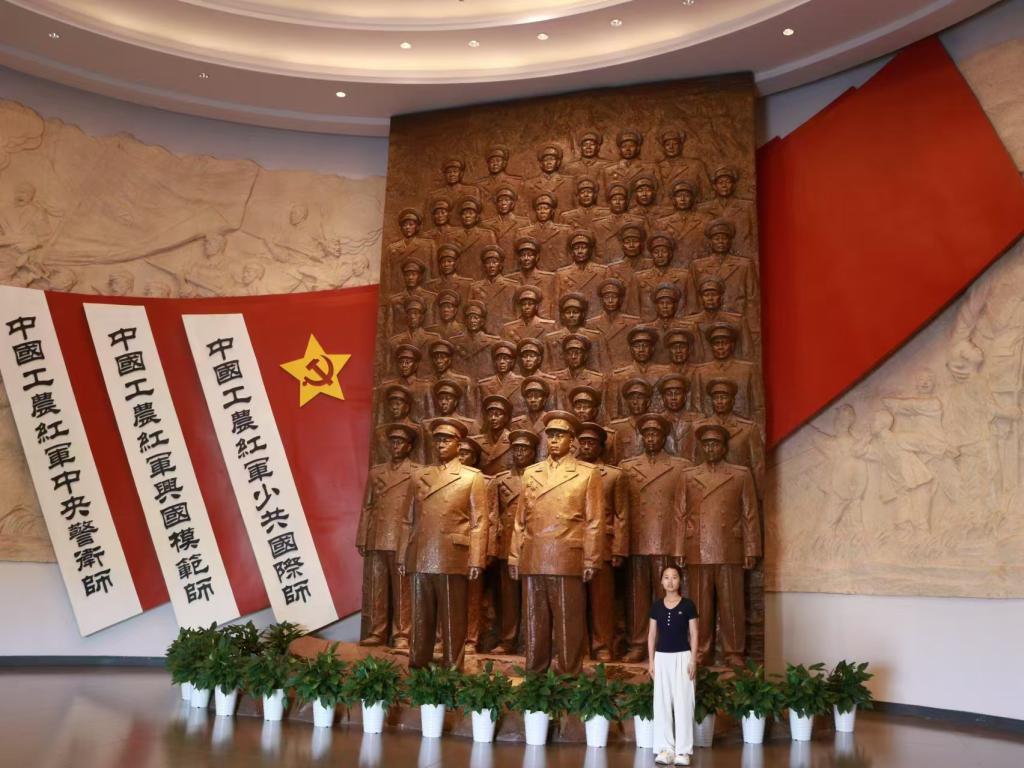 兴国,被誉为“中国烈士第一县”,这里走出了56位共和国将军。八月七日,在将军园里,生物科学专业A2312班朱慧敏同学仔细端详着每一位将军的雕像和生平事迹介绍。她特别被肖华将军的故事所打动——肖华将军不仅是一位杰出的军事指挥员,还是一位才华横溢的诗人。他在战争年代创作了大量鼓舞人心的诗歌作品,为革命队伍注入了强大的精神力量。朱慧敏深情地说:“每一位将军的背后,都是一段可歌可泣的故事。他们用青春和生命诠释了忠诚与担当。作为新时代的青年,我们要继承和发扬这种精神,为实现中华民族伟大复兴的中国梦贡献自己的力量。”