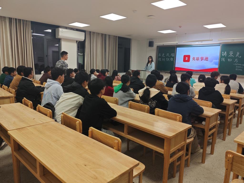 在此次团日活动中,A2451班团支书兰甜通过介绍了抗美援朝的历史背景及杰出的历史人物,让同学们更加充分地了解到抗美援朝战争体现出来的伟大精神。同时,通过播放抗美援朝战争相关的视频,让同学们更加直观地呈现了抗美援朝战争的不易与伟大,向我们展现出中国人民志愿军保家卫国的决心与付出。