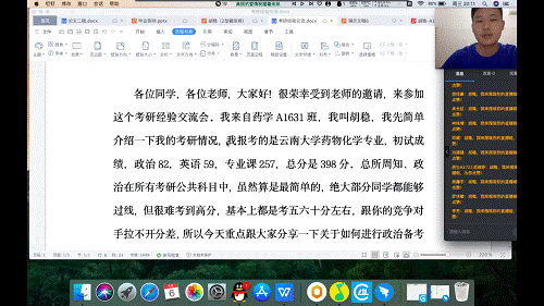 为帮助17级同学全面了解考研相关信息,加强考研动员,打消考研疑虑,药生学院于5月6日晚举行了考研经验交流会。因学生尚未返校,此次交流会采用钉钉在线课堂直播形式进行。交流会由药生学院团委老师周海霞主持,邀请了升学至贵州大学及南方医科大学的2019届药生学院学子对17级本科生进行考研动员,此外,还邀请了6位16级考研高分同学讲解考研高分策略。2017级全体本科生及辅导员班主任人参会。