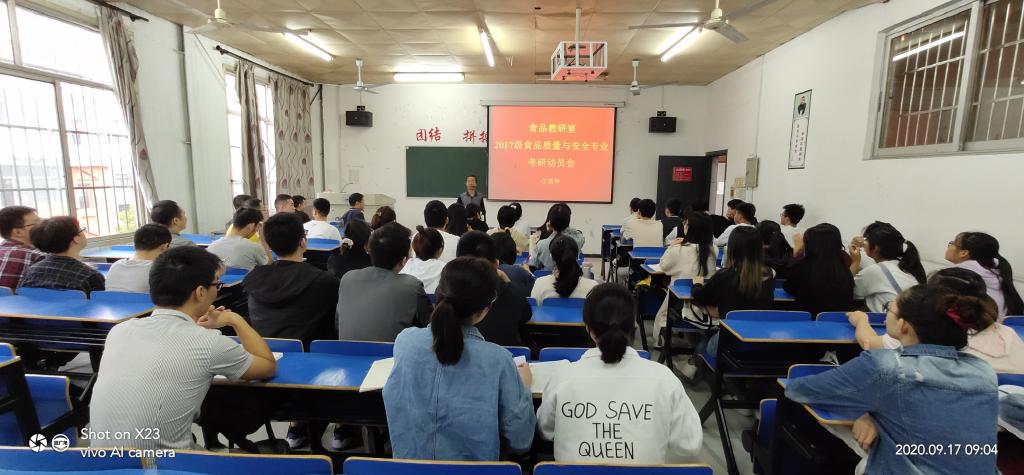 为进一步提高食品质量与安全专业2017及2018级同学报考研究生的热情及录取率,2020年9月17日上午9:00-11:30,食品教研室全体教师在心远楼604举办考研动员交流会。本专业2017级全体同学及2018届尚未决定考研的同学参加了此次会议。