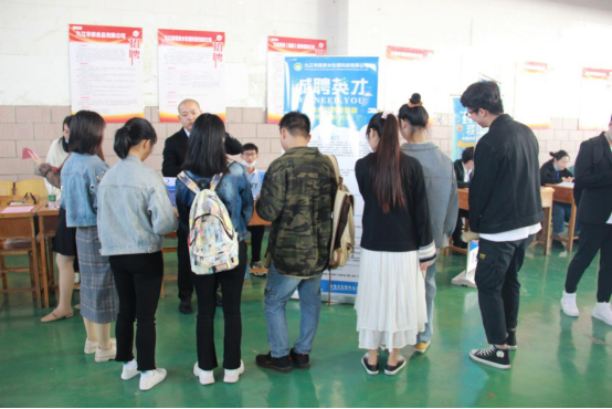招聘会吸引了来自北京、上海、江苏、浙江、广东、江西、湖北、湖南等地百余家企业参加,提供岗位近300个,招聘人数约2300人,共有700多名同学到现场应聘。