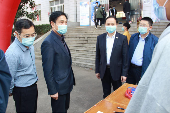 在招聘会现场,杨耀防强调了招聘会的安全防疫工作,在场馆内必须佩戴口罩。在了解招聘会整体情况后,他对许多有实力的上市公司驻校招聘表示赞许,对招聘会周密布置、优质服务提出表扬。