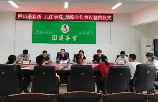 为提高学院服务地方发展能力,促进九江市茶产业发展以及产学研合作,6月2日下午,药生学院院长张小谷带领博士工作团来到庐山茶叶科学研究所,双方就开展科技研发进行座谈并签署战略性合作协议。签约仪式由庐山茶科所副所长余明慧主持,九江市农业技术推广中心经作站站长黄纪刚、副站长刘爽,庐山市茶叶协会会长卢华林出席签约仪式并分别致辞。