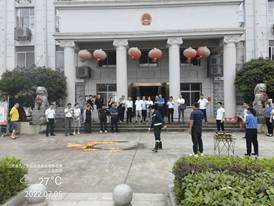 授牌仪式之后,参会人员在都昌县政府大楼前现场观看了江西欧博植物型水基消防器材的灭火演示。