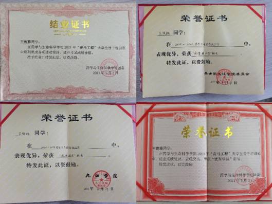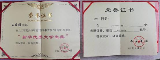 王俊雅同学现担任药学与生命科学学院学生会执行主席,获“九江学院优秀学生干部”称号,在2021年度学生会基层分会评比中,药生学生分会获得“优秀基层分会”称号。努力进取的过程中,获得了“九江学院新华优秀大学生”的荣誉,不负理想,不负韶华。