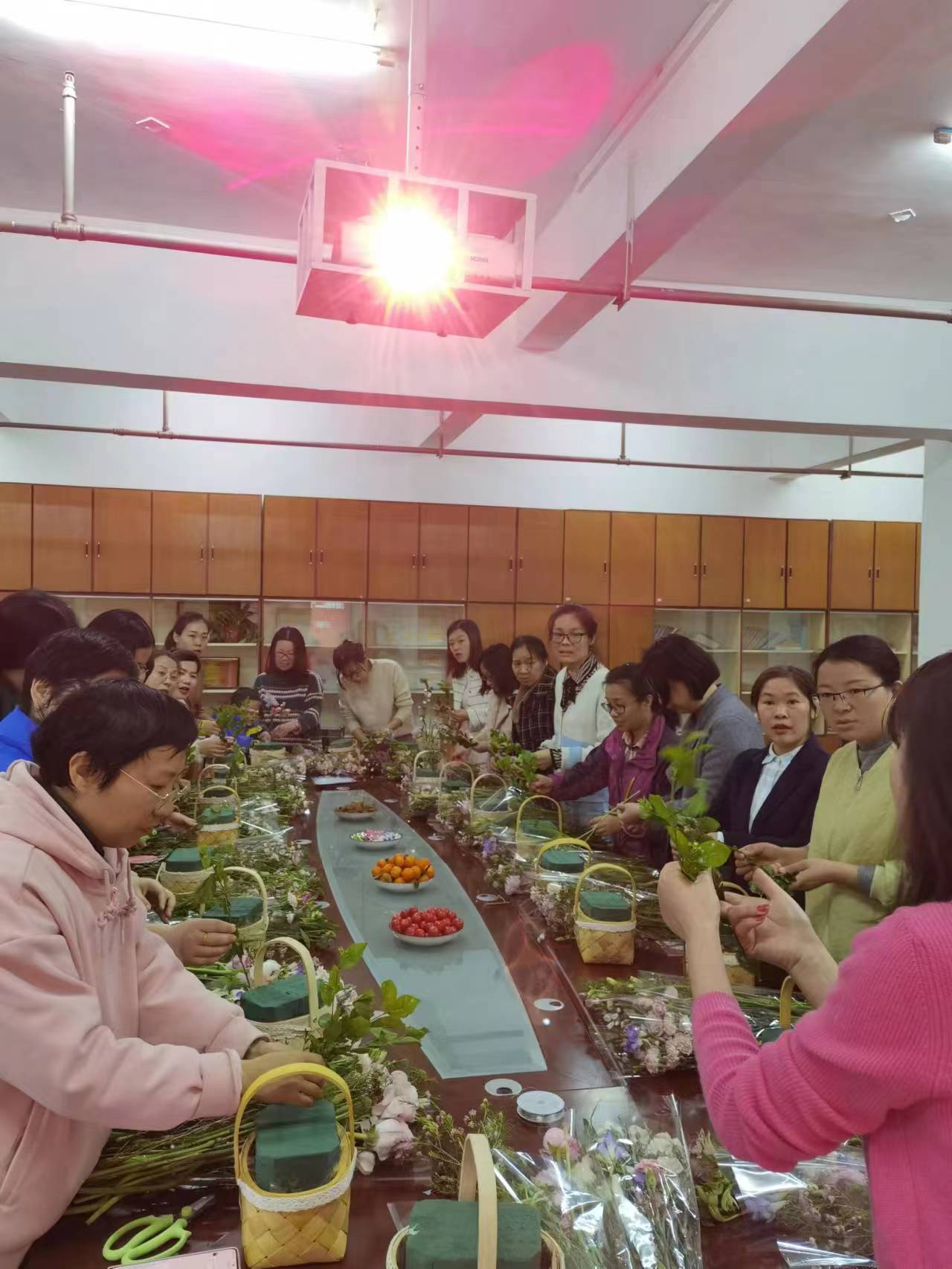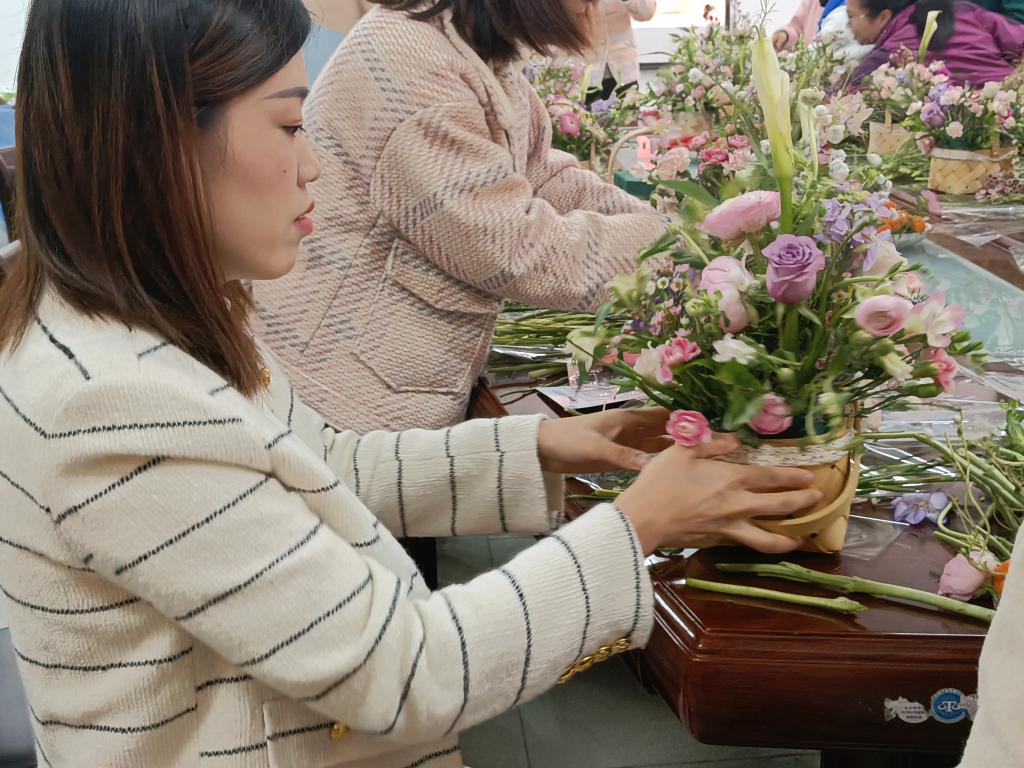 随后,插花活动开始,大家兴趣盎然,纷纷发挥创造力,施展插花技能,小心修剪每一朵花。根据不同的色彩搭配,整合造型,一个个造型精美的花篮向上而生。现场气氛热烈,一个多小时活动,欢声笑语不断,让大家在辛勤工作之余享受美好生活,在浓浓的花香中寻觅艺术乐趣,共度美好节日。