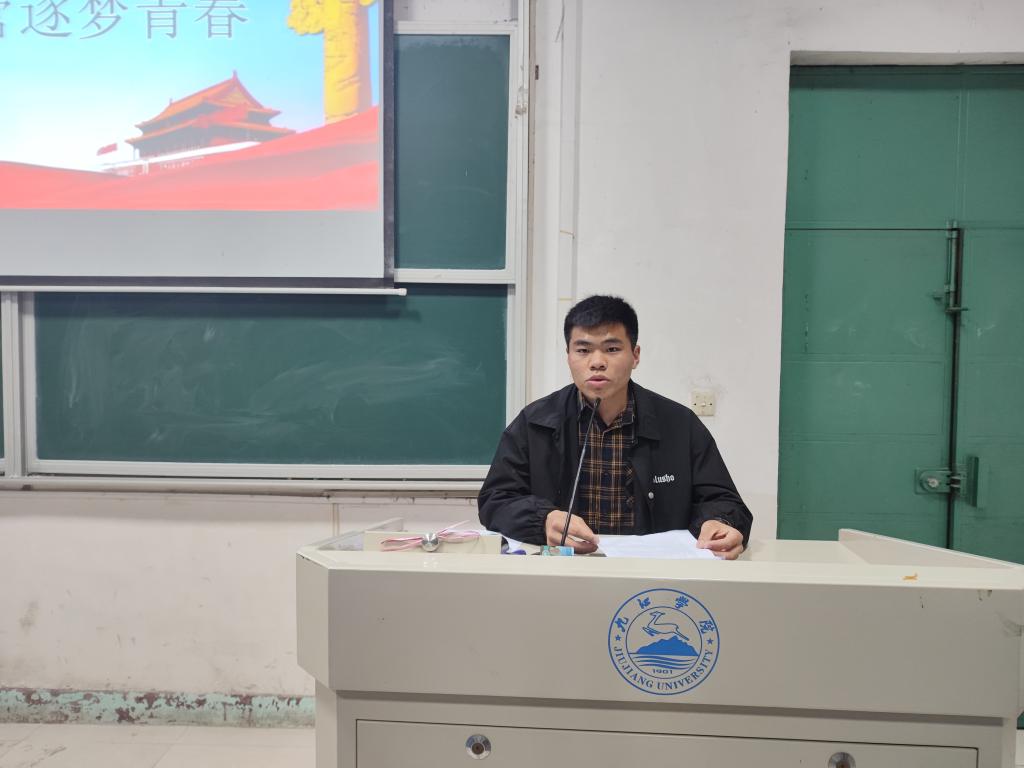 “2年的部队经历,我不仅收获真挚而宝贵的战友情,身体素质得到提高,这段经历更是我人生中最宝贵的财富,我要把这些讲给身边的同学们听。”邓家豪是一名光荣的预备党员,曾在部队获得“四有优秀军人”荣誉称号,一次中队嘉奖,一次支队嘉奖,在校期间获得二等奖学金、三等奖学金,在校运会中斩获男子1500米金牌,5000米银牌,获得“优秀运动员”荣誉称号。他重温军营记忆,结合自己入伍经历,与大家分享学业就业、部队生活、发展规划,讲述自身从军体会和成长收获。他鼓励同学们要有携笔从戎的家国情怀,用参军之举、报国之行,不辱时代使命,不负韶华,积极投身祖国强军兴军伟大事业,为实现强国梦强军梦奉献智慧和力量。