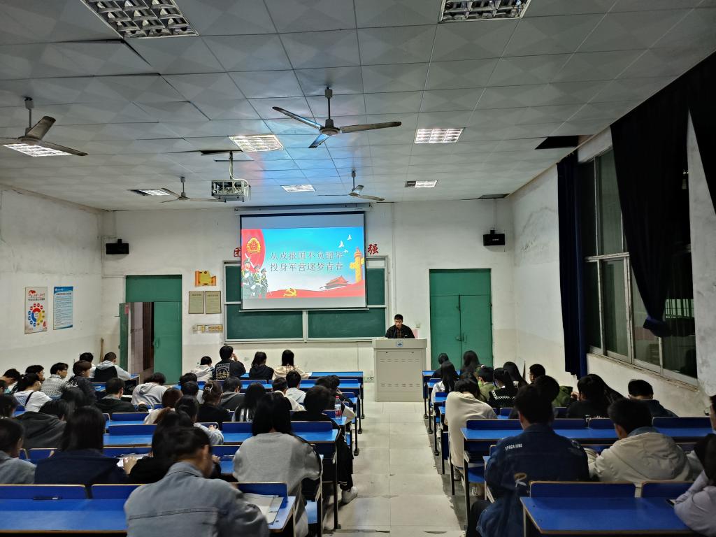 国无防不立,民无军不安,征兵固防,安国兴邦。身边的榜样,是最有力的动员。为响应2023上半年征兵工作,药生学院党委精心部署朋辈教育活动,充分发挥优秀学生模范带头作用。3月15日药生学院以“从戎报国不负韶华,投身军营逐梦青春”为主题,开展朋辈教育系列活动,由优秀退伍军人生物工程专业A2021班邓家豪担任主讲。