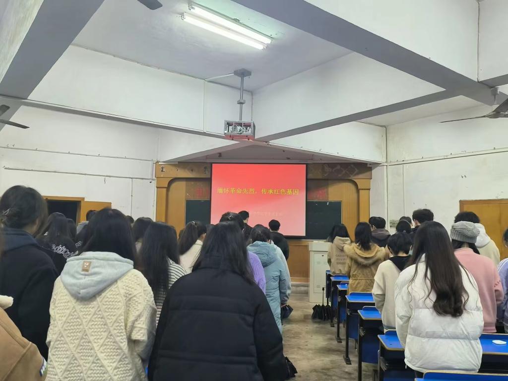岁月悠悠,英魂永存;赤子情怀,感天动地!在抗战年代,在中华民族的探索道路之上,在中国为国盛民强的奋斗历程之中,无数先烈用生命和鲜血为我们铺设了幸福之路,先烈们的丰功伟绩,人们不会忘记。在清明节当天,药学与生命科学学院学生党支部组织全体党员、入党积极分子齐聚于笃学楼204,为缅怀先烈,继承初心,全体人员起立,在座位上默哀一分钟,以此来表示对革命先烈真诚致敬与悼念。