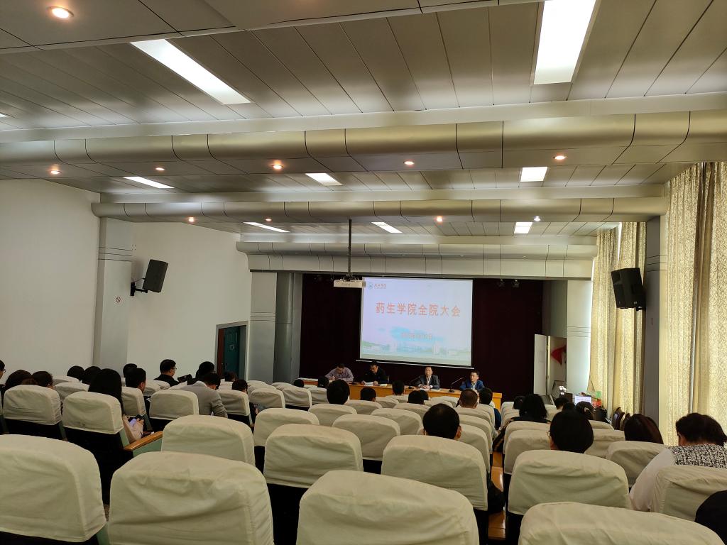 4月12日下午,药生学院全院大会在立本楼报告厅召开,院长张小谷、书记张国伟、副书记邓海波、副院长张化浩及全体教职工参会,会议由张国伟主持。