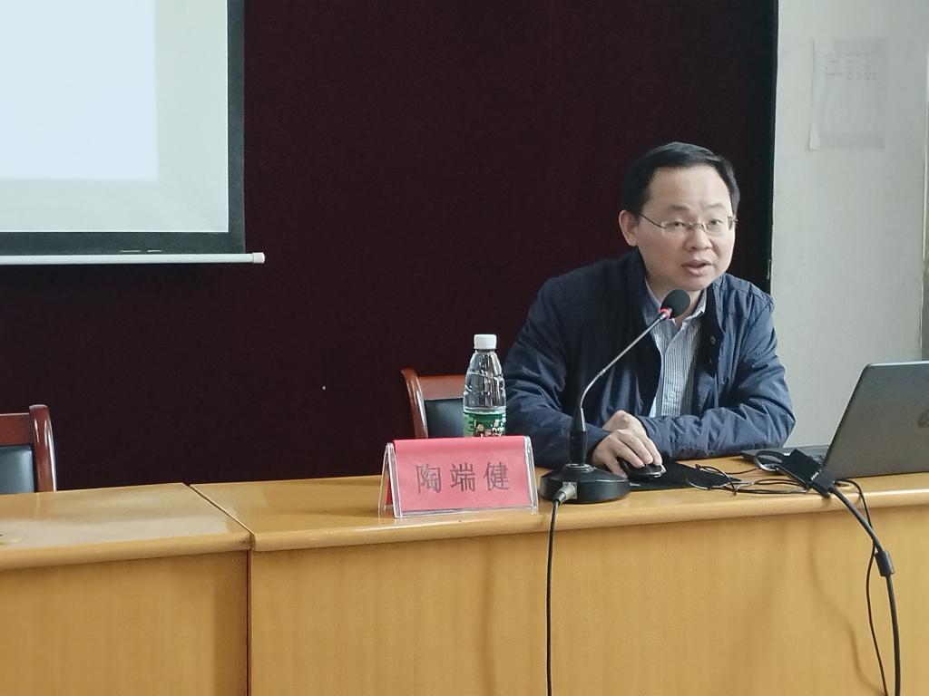 陶端健教授报告题目为《如何准备与撰写江西省自然科学奖申报书》。陶教授从科技奖的分类及特征讲起,告诉大家报奖前要充分分析成果自身特点,选准最适合本成果的奖励类别;接着说起报奖申请书的撰写思路以及申报的一些技巧和申报成功的一些关键因素。并在现场和大家进行了交流互动,解答了几位有志于申报江西省自然科学奖的教师的一些疑问。