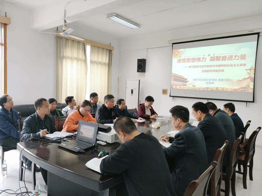 4月28日下午,药生学院学习贯彻习近平新时代中国特色社会主义思想主题教育读书班第一次集中学习会暨党委理论学习中心组(扩大)学习会在心远楼413会议室召开,学院党委书记张国伟主持会议并讲授主题教育专题党课,学院党政班子成员、各科室、教研室(实验室)负责人、各党支部书记、各民主党派代表参加会议。