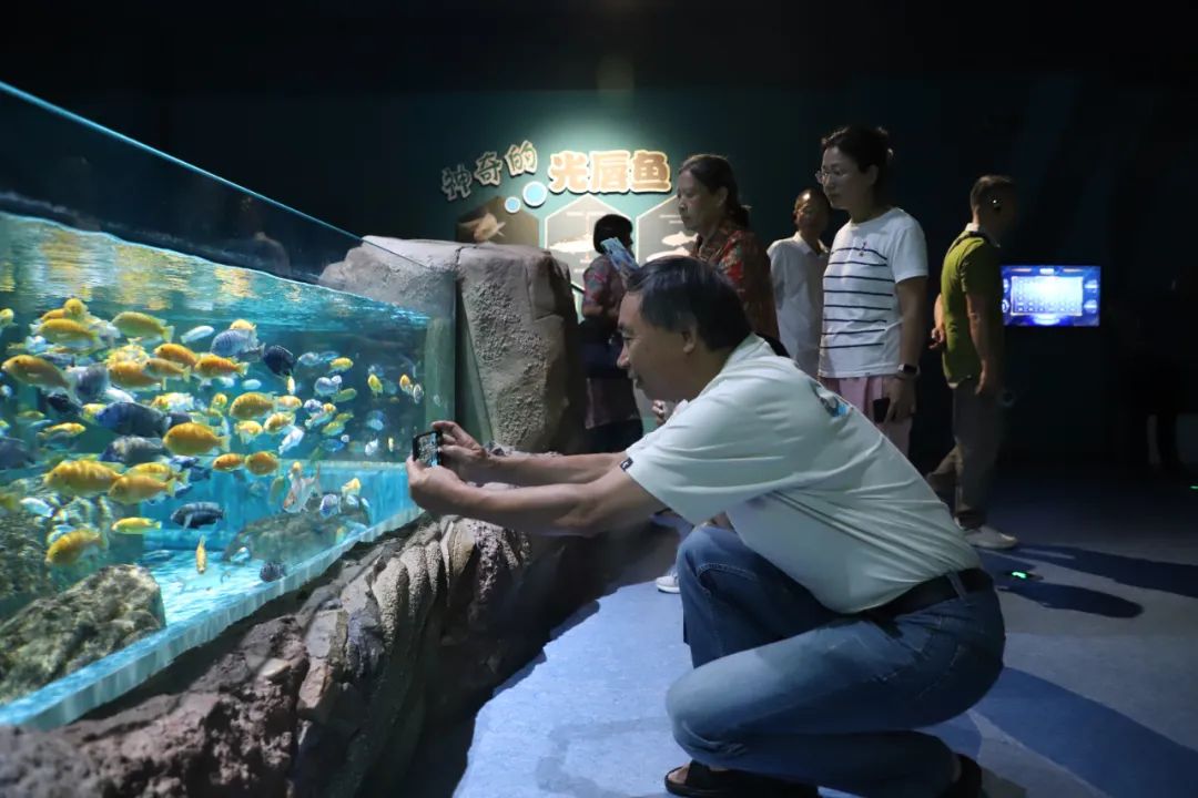 7月24日上午,专家团队先后来到药生学院合作基地九江市凰山守正中药材开发有限公司、中国江豚湾-长江鄱阳湖水生生物保护基地进行现场考察,深入了解九江水生生物资源保护和特色中药材资源开发利用情况,并提出指导建议。同时,举行了九江学院药学与生命科学学院与湖口长江鄱阳湖水生生物保护基地共建的“产学研合作基地”揭牌仪式,湖口县委常委、宣传部长卢伟俊,副县长余恺和考察专家团一起参加揭牌仪式。