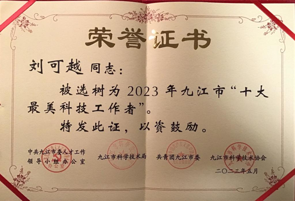 为助力我市中医药产业建设和发展,刘可越同志积极参加市委统战部牵头开展的“百博挂百企”活动,努力做到服务社会、成就自我、实现双赢。并为校企合作奠定良好基础。运用专业特长,为多家地方企业提供技术支持,帮助企业攻克技术难题与壁垒,为服务地方经济建设贡献力量。2023年被评为“九江市最美科技工作者”。