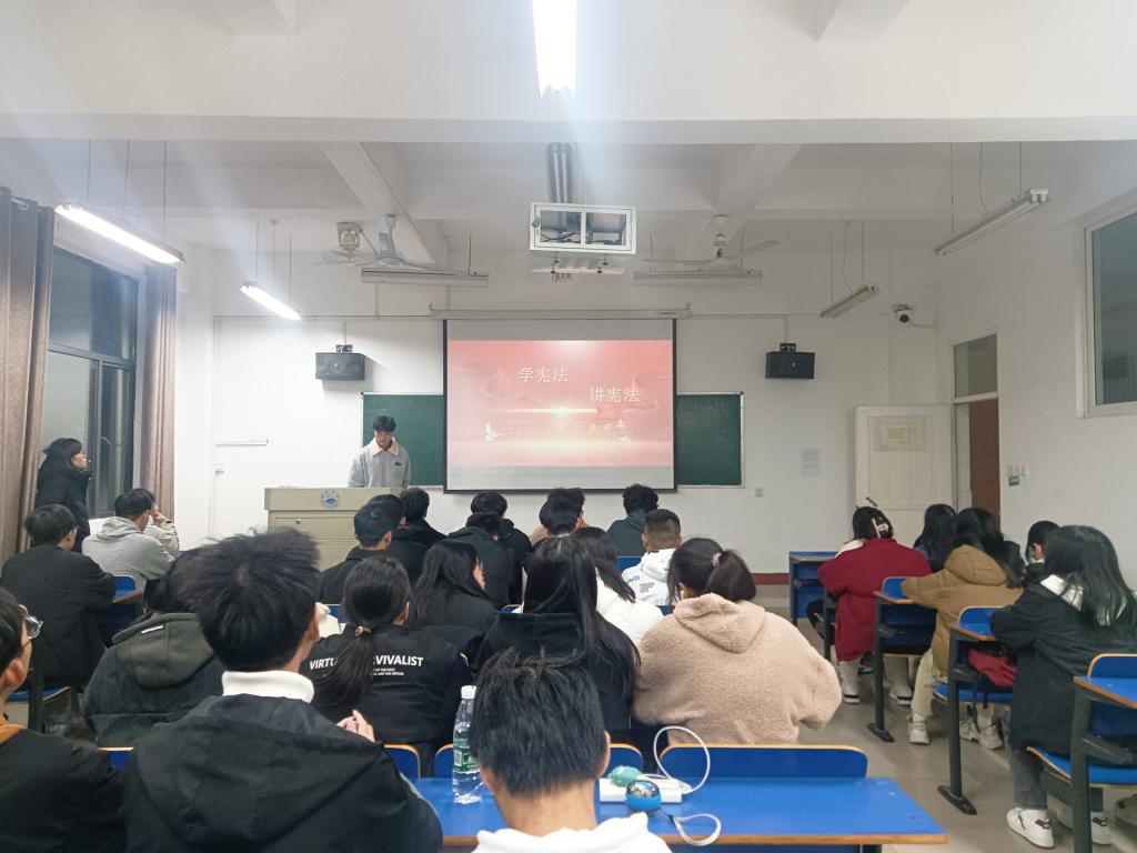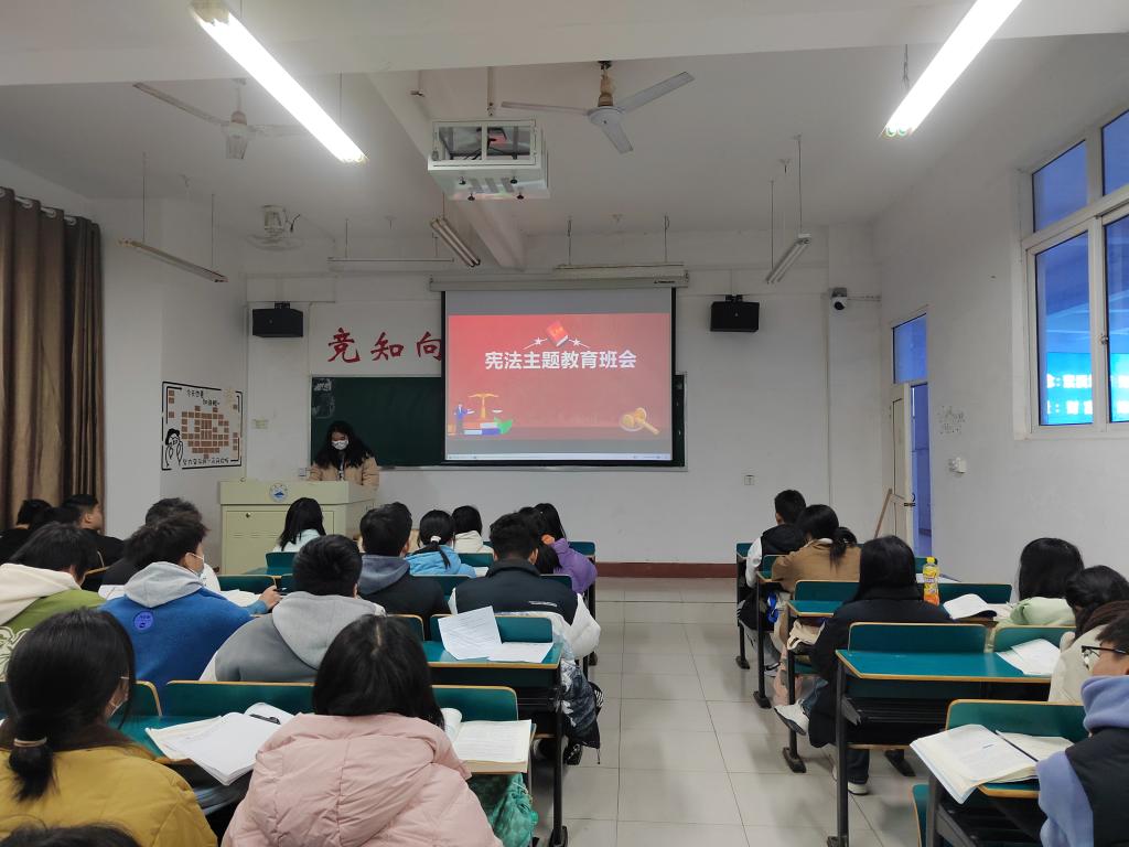 班会上,各班班委向同学们介绍了宪法的基本内容和重要意义,同学们通过观看宪法宣传视频和阅读宪法相关资料,进一步了解了宪法的发展历程和主要内容。同时,各班班委向同学们发出倡议,希望同学们在日常生活中做到学法、知法、守法、用法,积极成为推广宪法,遵守宪法的大学生。