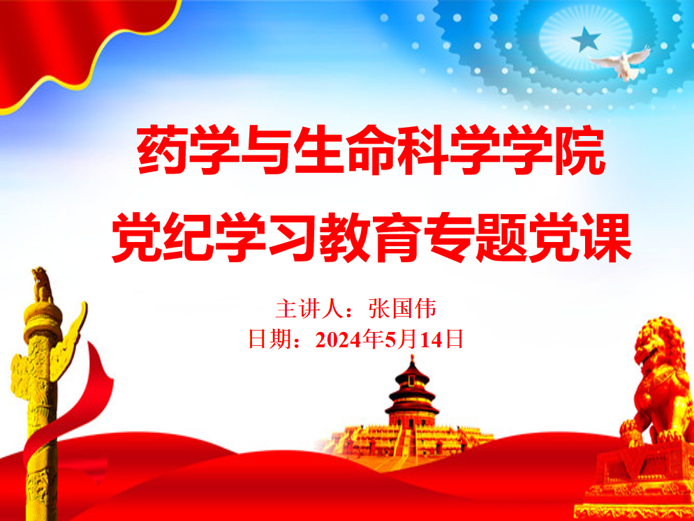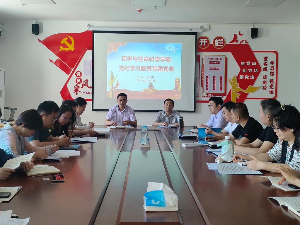 按照上级有关党纪学习教育总体安排,5月14日下午,药生学院党委书记张国伟以“坚定信念、恪守党纪”为题,为学院全体中心组成员和教工第二党支部全体党员讲授了一堂生动的党纪学习教育专题党课。