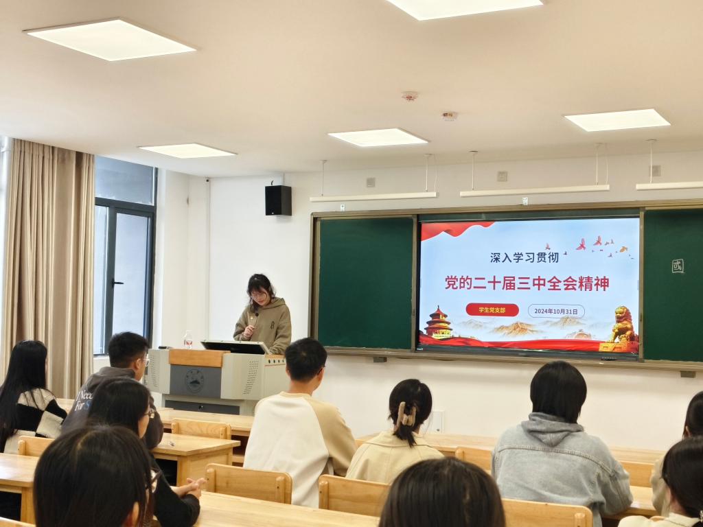 为了深入学习领悟党的二十届三中全会精神,10月31日,药生学院学生党支部在B104教室开展了“深入学习贯彻党的二十届三中全会精神”为主题的主题党日活动,药生学院学生支部党员和2024年下半年入党积极分子培训班全体学员参加此次活动。