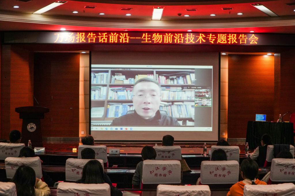 张宏翔秘书长通过视频致辞,代表中国生物工程学会对九江学院专场报告会的举办表示祝贺,向一直以来支持和关心中国生物工程学会工作的九江学院师生表示感谢,并希望通过本次活动,促进本领域学术交流,提升青年科技工作者的创新精神,促进生命科学与生物技术领域创新型人才培养。他强调生物科技工作者要积极开展科技创新和宣传教育活动,推动社会进步和经济发展,更好地服务人类健康和国家战略。