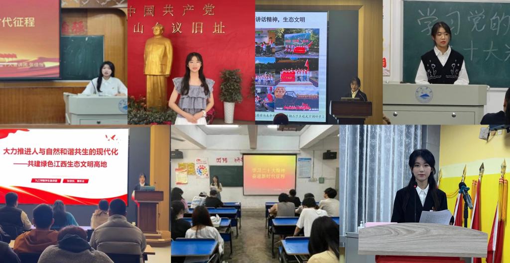 在思想政治方面,自入校以来,她积极参加团日、党日活动,加强自身的政治素养,学习贯彻习近平新时代中国特色社会主义思想,高举爱国旗帜,并于2023年12月正式加入中国共产党。在学习生活中实践学习精神,不懈努力,敢拼搏,敢奋斗。她两年度评为“九江学院全校优秀共青团员”及“九江学院全校优秀团干部”的荣誉称号。同时在党的二十大召期间积极学习党的二十大精神并学习习近平考察江西时发表的重要讲话精神,作为党的二十大精神校宣讲团成员在学生干部群体中宣讲学习精神。