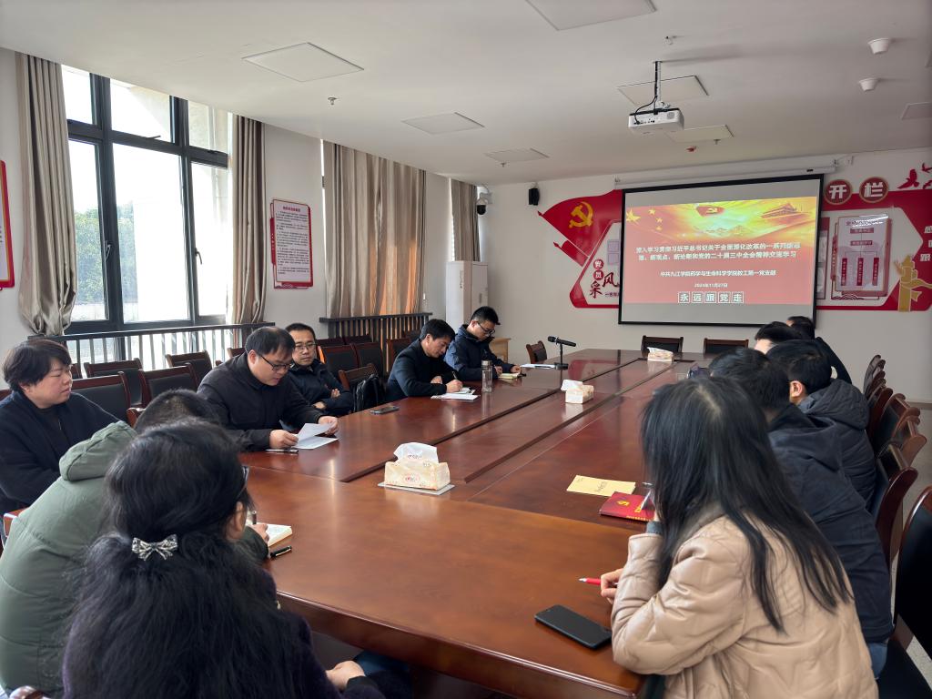 11月27日下午,学院各党支部通过主题党日活动、支部党员大会等形式组织支部全体党员(含科级及以下干部)学习了“深入学习贯彻习近平总书记关于全面深化改革的一系列新思想、新观点、新论断和党的二十届三中全会精神”,科级及以下非党员干部列席旁听会议,会上相关老师进行了交流发言。