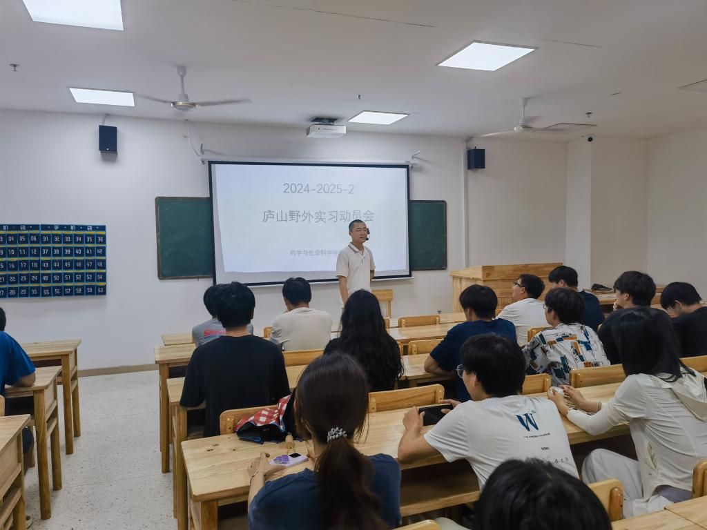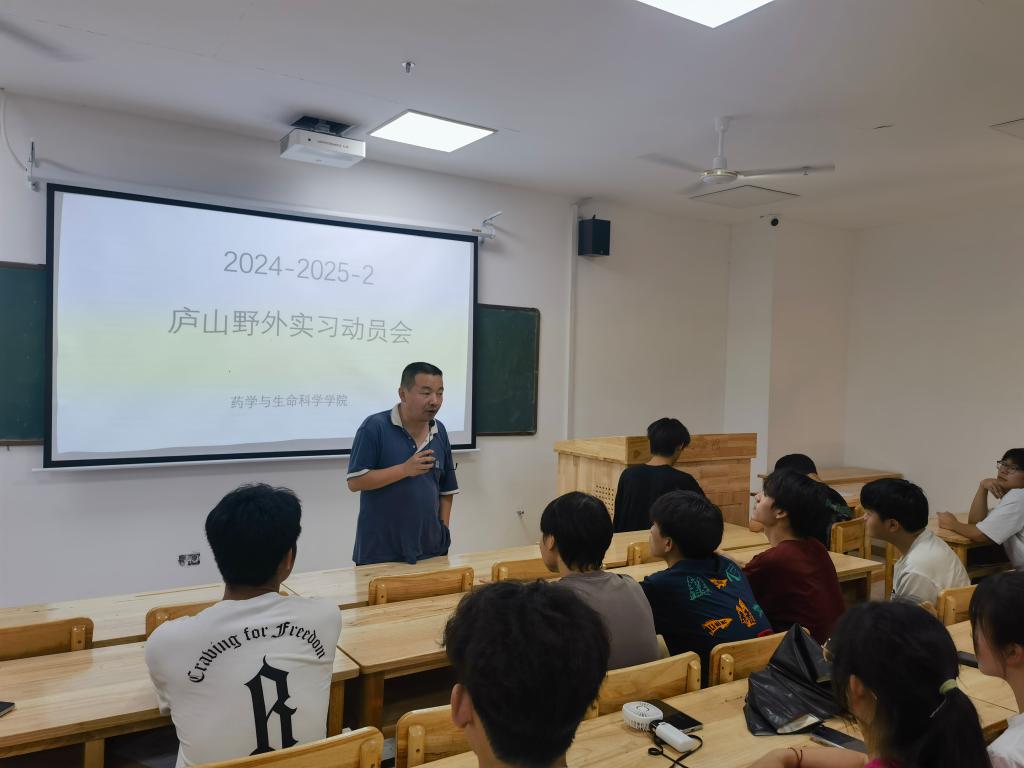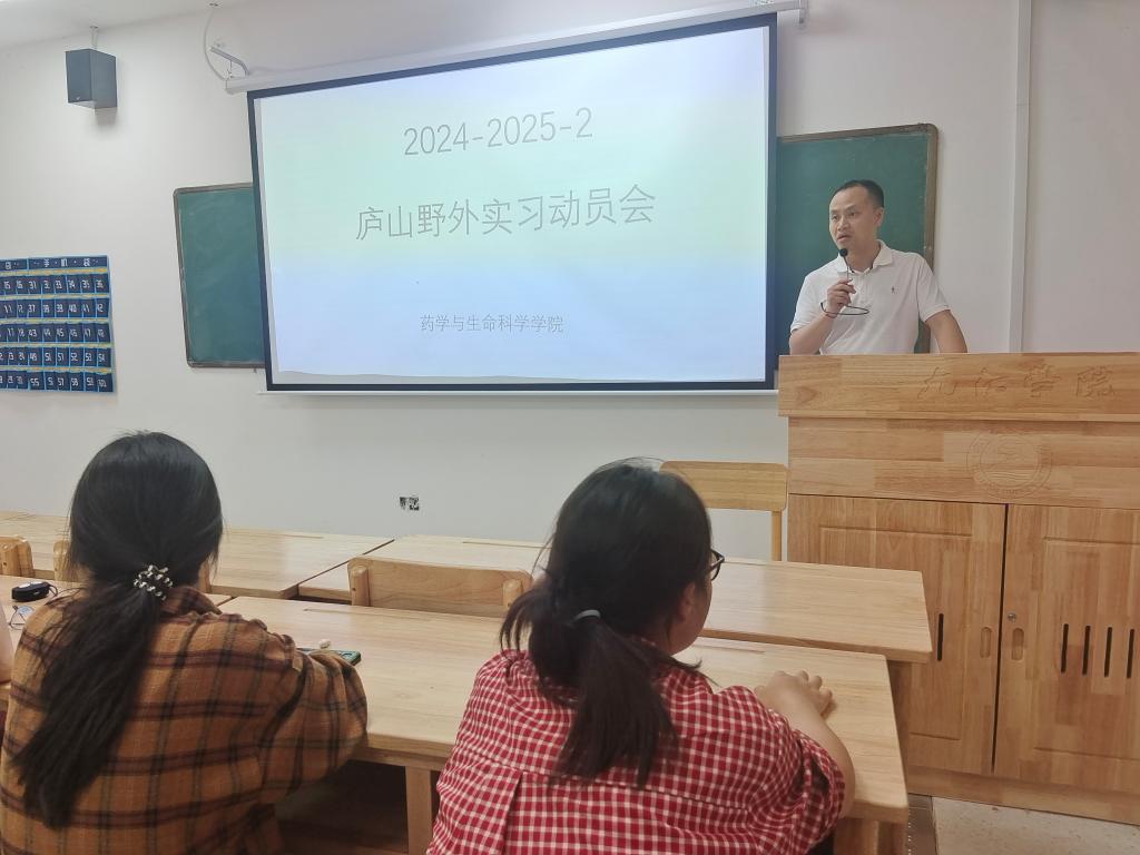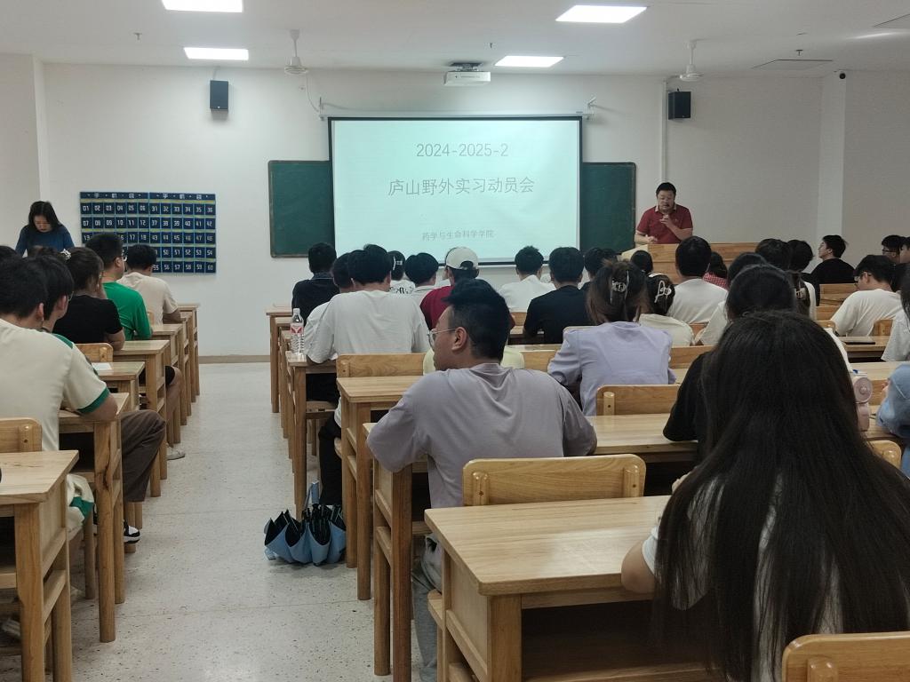 5月21日下午,药学与生命科学学院在基础实验楼218召开庐山野外实习动员大会,学院党委副书记邓海波、副院长何刚、学生科、教务科、实习指导老师、班主任以及23级和24级生物科学专业、23级药学专业共8个班全体学生参会,会议由学院教学科研管理科老师张良慧主持。