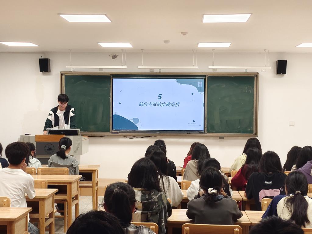 最后,全体学生在诚信誓词背景下签写诚信考试承诺书,将诚信考试信念转化为具体行动。本次班会通过多元展示,推动诚信考试观念入脑入心,为构建诚信校园筑牢基础。