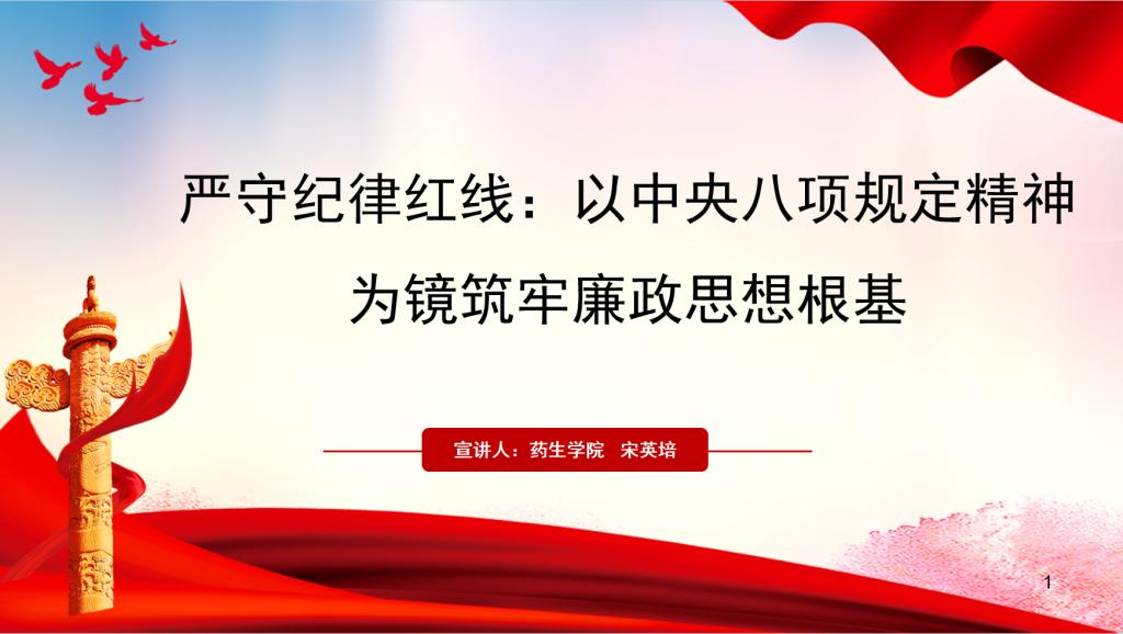 为持续推进深入贯彻中央八项规定精神学习教育,6月4日,药生学院党委委员宋英培做了题为“严守纪律红线:以中央八项规定精神为镜筑牢廉政思想根基”的专题党课培训。药生学院教工第一党支部、教工第三党支部全体党员教师参与这次培训。