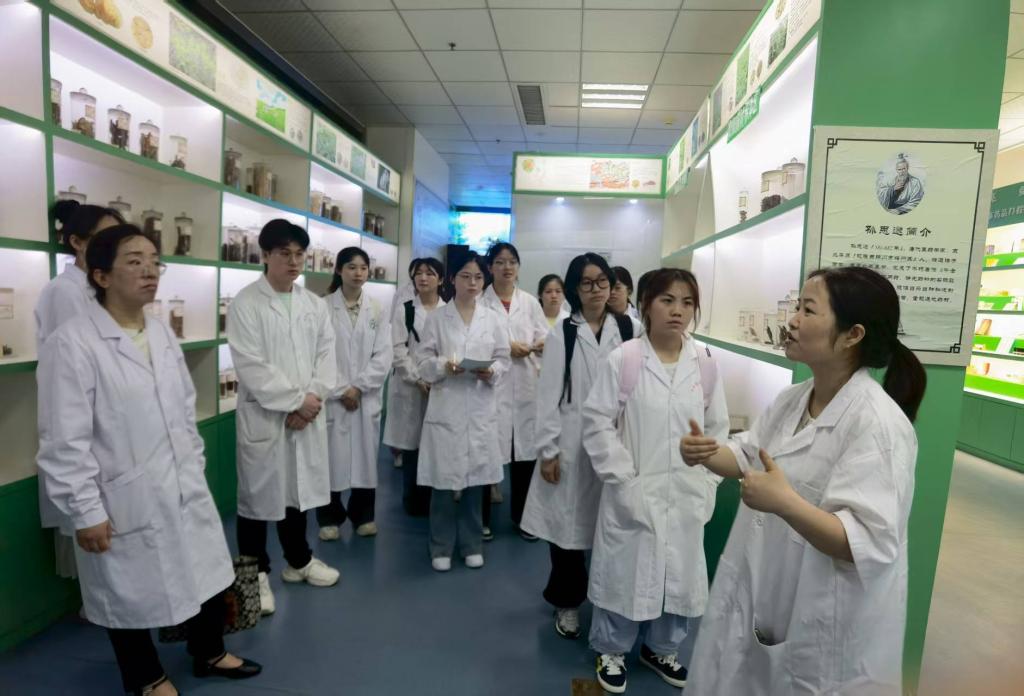 在食品药品分中心负责人盛晓静及中药实验室负责人张晓云的带领下,师生首先参观了中心的标本馆。张晓云结合多年一线检测经验,详细讲解了近年来药检部门在日常工作中发现的假药、中药伪品以及常见中药材的标准样本。通过实物展示与案例剖析,学生们对药品真伪鉴别、质量控制标准等《药物分析》课程中的核心知识点有了更直观、深入的理解。