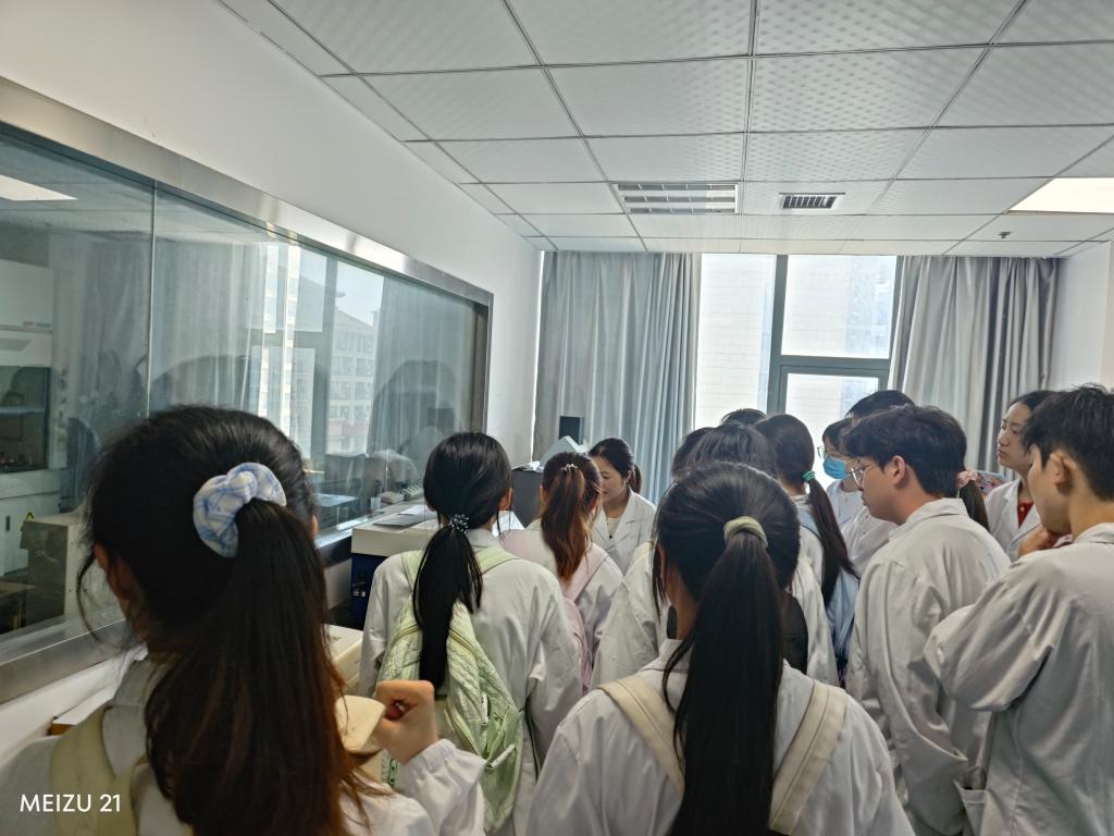 在实践环节,师生们走进食品药品检测实验室,近距离观摩了高效液相色谱仪、气相色谱仪、液质联用仪、气质联用仪等现代分析仪器的操作流程,并了解了各类药品从抽样到检测的完整流程。这一过程不仅加深了学生对《药物分析》课程理论知识的理解,也激发了他们对科研与质检工作的兴趣。