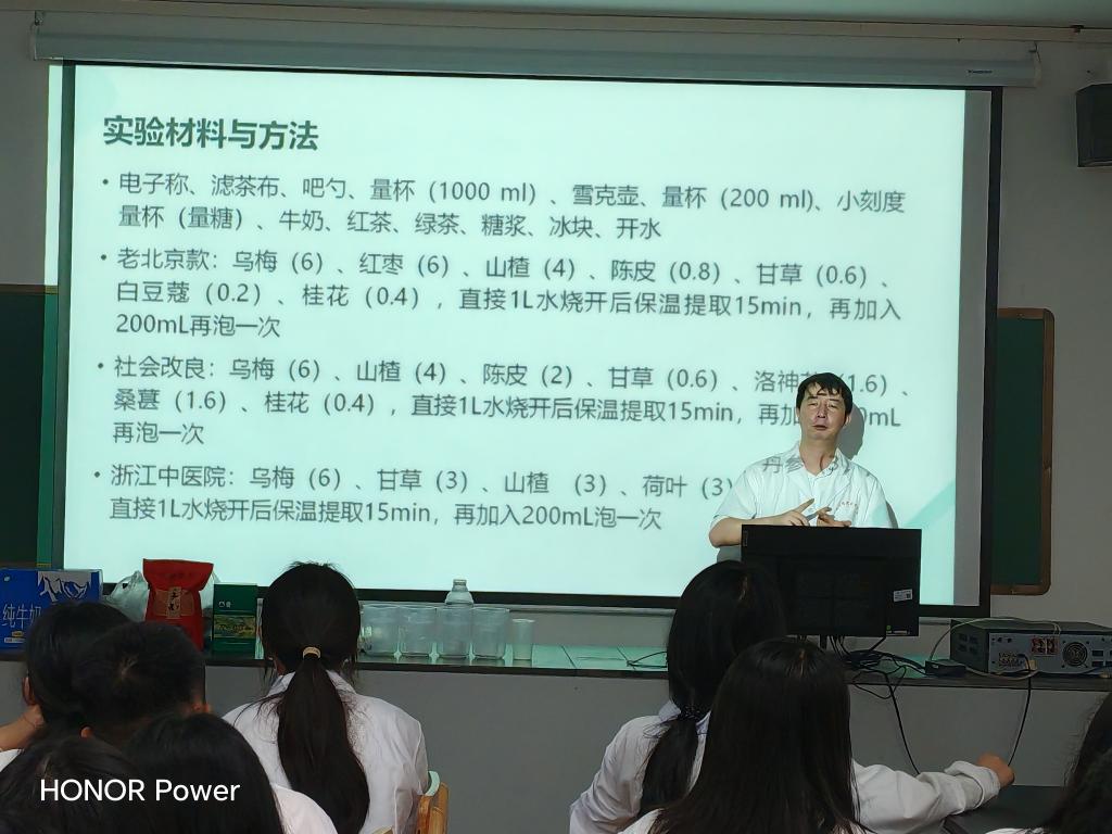 本次实验聚焦“快养生”消费新趋势,以企业技术需求为导向,要求学生将三款地域经典方剂——老北京酸梅汤基底、浙江中医院降脂方、社会改良款——进行奶茶化重组。通过调整配方比例、优化口感层次,探索传统药膳从“功能性强”向“好喝又有效”的转化路径。徐安浔经理结合古方茶语的产品研发需求,指导学生分析年轻群体对药食同源饮品的核心诉求:在保留传统功效(如降脂、解暑)的同时,需突破“药味重、口感涩”的痛点,提升适口性,实现“良药可口化”的跨界创新。