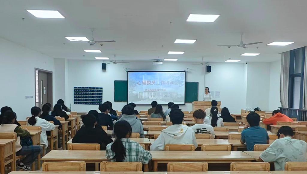 为深入推进心理健康教育工作,充分发挥班级心理委员在学生群体中的朋辈辅导作用,构建更加和谐、健康的校园心理氛围,药学与生命科学学院于10月15日中午12点在基础大楼218成功举办了心理委员培训会。全院60余名心理委员齐聚一堂,共同参与了此次系统性的专业培训。此次会议由学生科辅导员高丽主持。