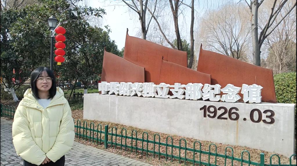 在浙江绍兴,应梦琪同学走进绍兴独立支部纪念馆,在“红色初心步道”追寻先辈足迹,端详历史照片与革命文物,重温1924年绍兴地方支部成立的峥嵘岁月,从先辈白色恐怖下的斗争事迹中,直观理解了共产党人早期的奋斗精神,感悟到“星星之火终成燎原之势”的真理力量。