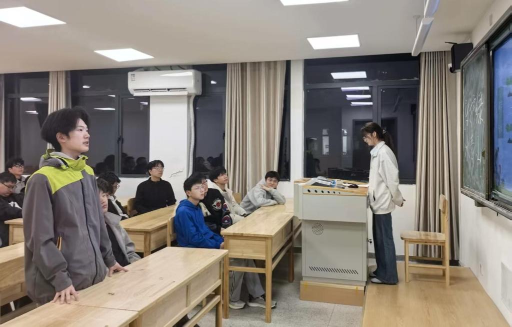 A2531丁璐远同学的提问引发同学们思考 “日常生活中如何保护树木、践行环保”,同学们积极踊跃发言,分享了自己的想法,发言结束后,她与大家共同梳理了可落地的环保行动:节约用纸,从源头减少树木消耗;拒绝一次性筷子,据数据显示我国每年因一次性筷子需砍伐约 2500 万棵大树,拒绝使用就是守护森林;爱护身边花木,杜绝折枝摘花等伤害绿植的行为。