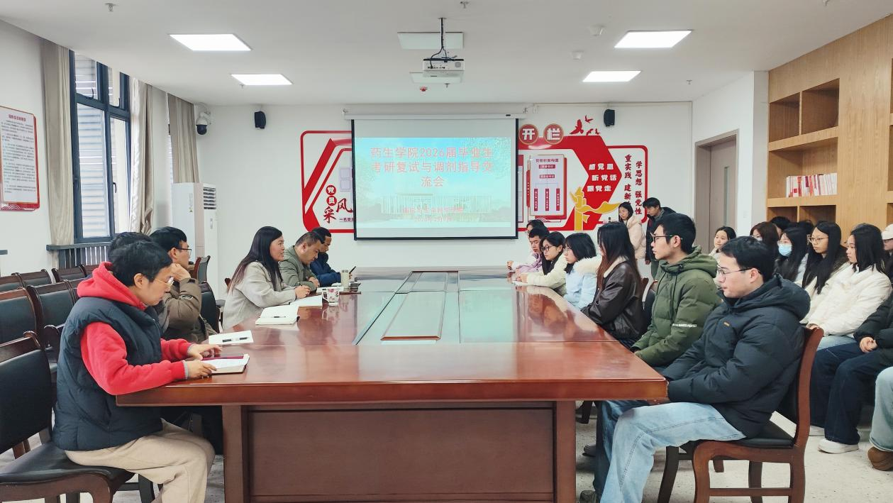 为精准助力2026届毕业生在考研复试环节中取得佳绩,切实提升学院考研录取率,3月9日上午,药学与生命科学学院在药生实验楼321室成功举办2026届毕业生考研复试与调剂指导会。会议特邀学院副院长宋英培和食品质量与安全教研室江慎华、药学教研室姜登钊、生物科学教研室周会汶、生物制药教研室王灿四位专业教师现场为同学们提供专业、细致的备考指导。本次指导会采用线上线下相结合的方式进行,部分毕业生在现场参会学习,同时通过线上平台同步直播,确保了未能到场的同学也能实时参与,共享宝贵经验。